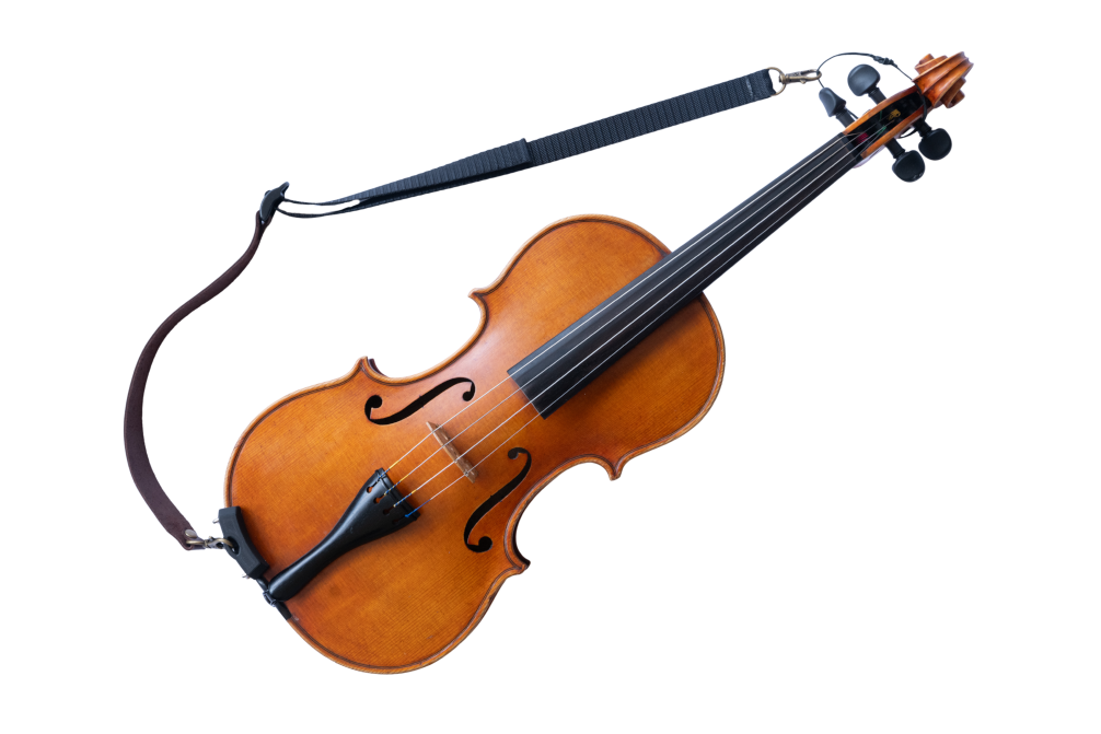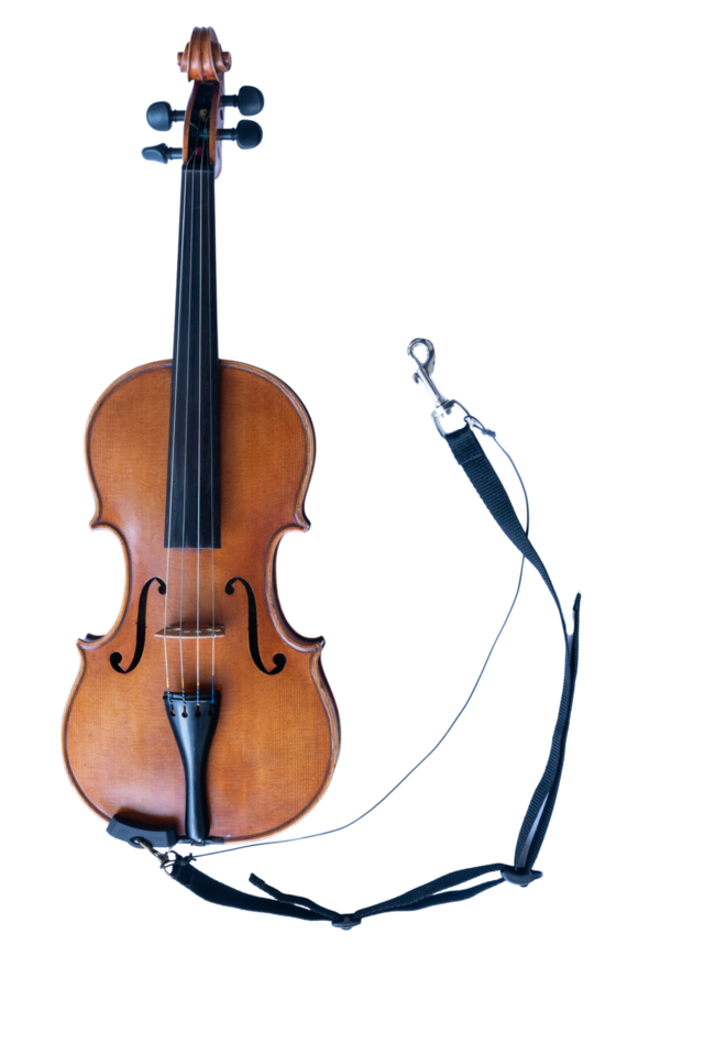 This strap holds the violin in standard violin position by clipping to the front belt loop of your pants. This decreases the reliance on your chin to hold the violin in place, intended to allow for more freedom of movement in the neck. A shoulder rest is recommended for an optimal playing position.